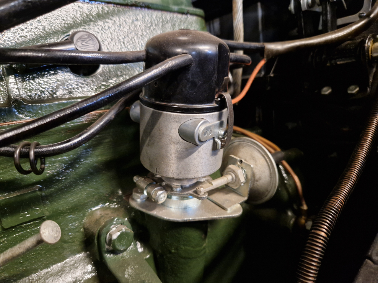 - 709.415 / 709.456 - de février 1939 à X 1945 – Distributeur d'allumage de marque S.E.V. avec capsule à dépression référence fournisseur inconnue(1) pour 7C (réf. 709.456), 11BL et 11B (réf. 709.415). Il se présente sous la même forme que le modèle avec avance automatique précédent (réf. 709.372). Une capsule à dépression (réf. 709.454 pour 7C, 453.120 pour 11B et 11BL) est désormais placé sur la bride de maintien de l'allumeur (réf. 453.031), celle-ci actionne un levier relié à l'axe de l'allumeur en partie basse.